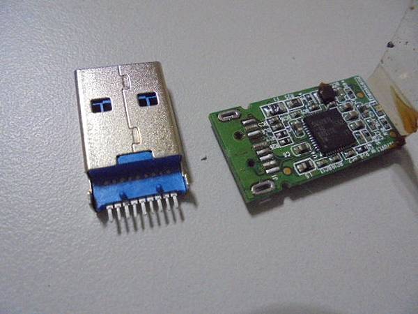 【現場完修】Transcend創見820→64GB隨身碟USB 3.0插在MacBook電腦使用時~被家中貓咪由桌上撞落地面→導致USB接頭折斷掉落已無法使用~要救回工作上的美工圖檔資料→檢視全新的USB 3.0 A接頭~臺北市士林區-張小姐【9隻焊接針腳完整無缺】