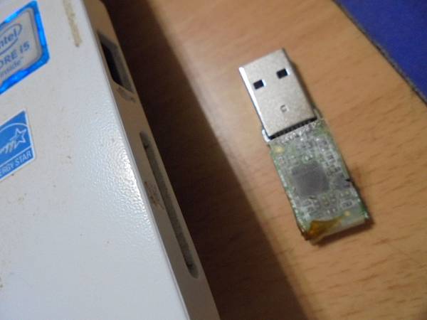 SP廣穎Ultima U03→16GB隨身碟插在電腦讀取~不慎撞到後導致USB接頭歪斜→再插上電腦已讀取不到裝置~要救回隨身碟裏的檔案資料→由主機板拔出SP廣穎U03 16GB~臺北市內湖區-蔣小姐【再拔出TOSHIBA東芝U202 16GB】