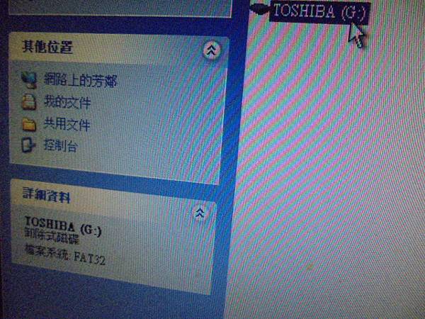 Apacer宇瞻AH323→8GB隨身碟檔案皆是正常讀取使用~送至店家做圖像輸出時→不知原因僅剩一個資料夾~其他檔案全部消失不見→已救回工作上的檔案資料~Mouse點選磁碟機→雲林縣虎尾鎮-陳小姐【TOSHIBA USB FLASH DRIVE USB Device】