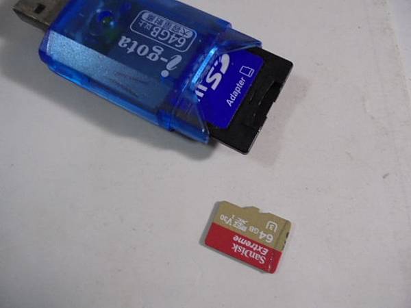 SanDisk晟碟64GB記憶卡Micro SDXC→於GoPro攝影機HERO 7 Black使用~不慎誤刪多張影片照片→自己嘗試救援影片相片卻救不出來~要救回記憶卡裏的檔案資料→讀卡機同轉接卡含記憶卡插上技嘉主機板~新北市板橋區-蔣先生【亮指示綠燈】