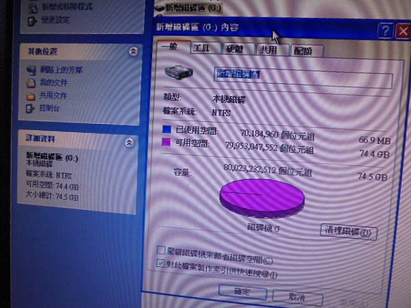 Seagate希捷3.5吋2TB~組裝桌上型電腦使用硬碟→孩子翻倒開機使用中的電腦後斷電~重開機已讀不到硬碟→光華商場報價30K救援費用~新增磁碟區G:可用空間74.4GB大小總計74.5GB→新北市板橋區-顧先生【已使用空間66.9MB】