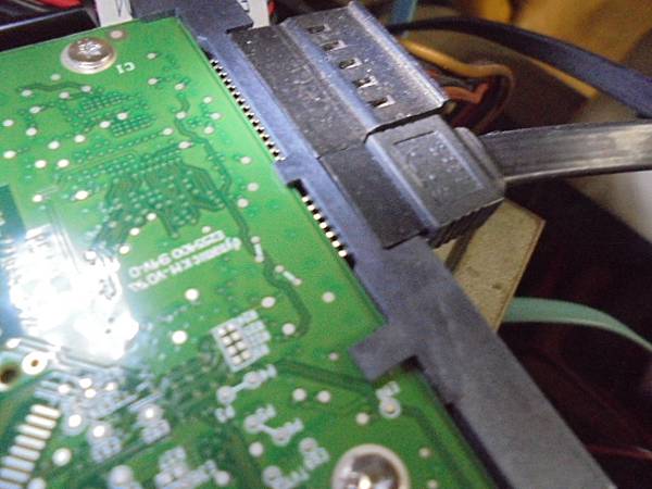 Seagate希捷1TB→3.5吋硬碟接於組裝電腦~SATA接座的訊號7Pin塑膠片→於拆拔中不慎折斷而無法讀取~已救回硬碟裏重要的檔案資料→再將Seagate希捷1TB硬碟~臺北市長春路-孫先生【接上電源線與特殊SATA訊號線】