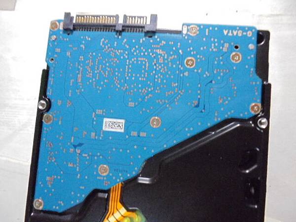 TOSHIBA東芝8TB~3.5吋企業及硬碟於組裝電腦使用→自行更換電腦零件時不慎摔到硬碟~折斷7Pin訊號接座塑膠片→想修好硬碟SATA接座繼續使用~以2隻手指觸摸電路板感受正常轉動的碟盤→新北市鶯歌區-邱先生【再將硬碟翻至正面】