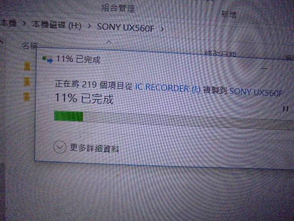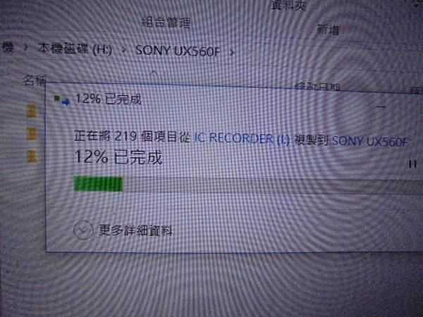 【現場檢測】SONY索尼ICD-UX560F→4GB錄音筆忽然開不了機~按電源鍵完全沒反應→導致無法取出錄音筆裏的檔案~購買水貨原廠拒絕救出檔案→完修錄音筆開關正確開機~正在將219個項目從I:複製到UX560F→臺北市信義區-張小姐【1%已完成】