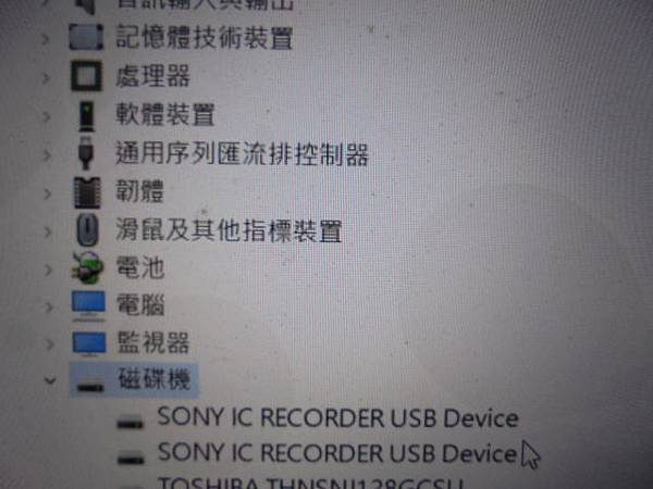 【資料救回】SONY索尼ICD-UX560F~4GB錄音筆忽然開不了機→按POWER鍵完全沒反應~導致無法取出錄音筆裏的檔案→購買水貨原廠拒絕救出檔案~已救回工作上的錄音檔案→螢幕顯示正在存取~臺北市信義區-張小姐【滑鼠點進系統工具裝置管理員】