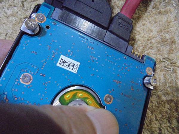 TOSHIBA東芝750GB→2.5吋硬碟為TOSHIBA東芝筆電出廠搭載~更換SSD硬碟後改為資料碟→不知原因出現未格式化視窗~要救出硬碟裏重要檔案資料→左手手掌將整顆硬碟托起~新北市三重區-蔡小姐【姆指觸摸線圈馬達位置感覺碟盤轉動】