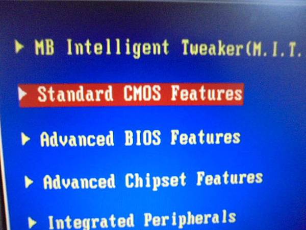 Seagate希捷1TB~3.5吋硬碟接於組裝電腦→SATA接座的訊號7Pin塑膠片~於拆拔中不慎折斷而無法讀取→完成修補SATA訊號座的斷針~DEL進入BIOS→臺北市長春路-孫先生【按向下鍵光棒移至Standrad CMOS Features】