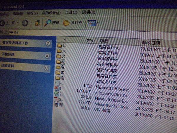 Transcend創見32GB~370隨身碟插在桌上型電腦被踢壞→USB接頭遭撞彎導致無法讀取~送當地店家判定接頭端印刷線路斷裂而無法修復→已救回工作的檔案資料~滑鼠點進G:展開資料夾列表顯示→雲林縣斗六市-蔡小姐【資料夾的修改日期與原本相同】