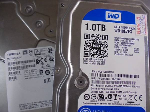 TOSHIBA東芝8TB→3.5吋企業及硬碟於組裝電腦使用~自行更換電腦零件時不慎摔到硬碟→折斷SATA接座7Pin訊號塑膠片~想修好硬碟接座繼續使用→備妥兩顆硬碟TOSHIBA東芝MG05ACA800E~新北市鶯歌區-邱先生【WD威騰1TB藍標3.5吋】
