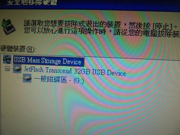 Transcend創見32GB~370隨身碟插在桌上型電腦被踢壞→USB接頭遭撞彎導致無法讀取~送當地店家判定接頭端印刷線路斷裂而無法修復→已救回工作上的檔案資料~停止硬體裝置→雲林縣斗六市-蔡小姐【現在可以放心地從系統中移除Storage裝置】