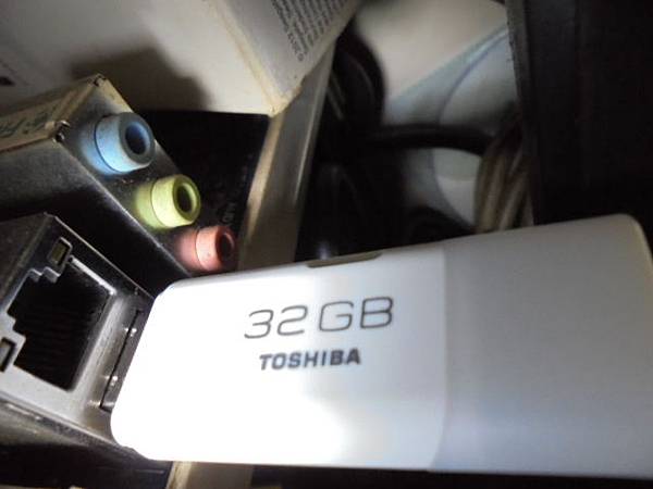 Transcend創見370→32GB隨身碟插在桌上型電腦被陌生人踢壞~撞彎USB接頭導致無法讀取→當地店家報價救回檔案資料要三萬六仟元~已救回工作上的檔案資料→將TOSHIBA東芝U202白色隨身碟插上主機板USB接座~雲林縣斗六市-蔡小姐【閃指示綠燈】
