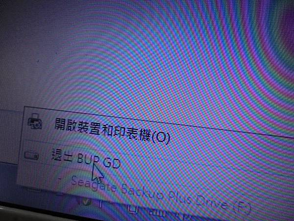 Seagate希捷Backup Plus可攜式硬碟4TB→先前正常存取檔案忽然讀不到裝置~更換多部電腦都讀不到→原廠救回檔案資料報價700美金~要救回硬碟裏的檔案資料→滑鼠左鍵點選退出BUP GD~新北市鶯歌區-潘先生【可以放心移除硬體Storage裝置】