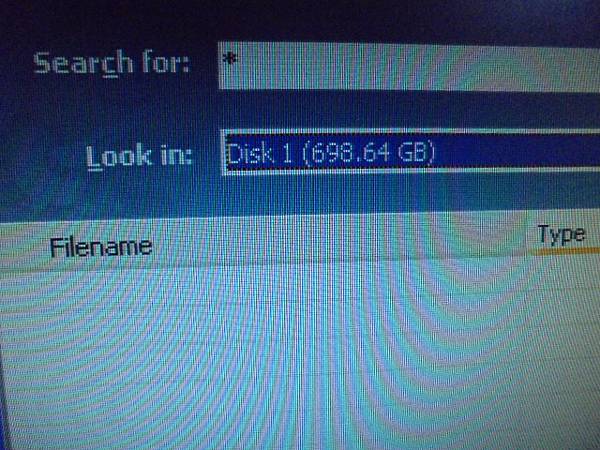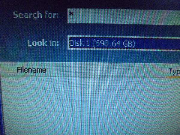 TOSHIBA東芝750GB~2.5吋硬碟為TOSHIBA東芝NB出廠搭載→改為資料碟後卻出現未格式化視窗~由其他人判定無法救援處理→要救出結婚與蜜月照片~開啟工具程式偵測→新北市三重區-蔡小姐【Look in:Disk 1 698.64GB標準750GB容量】