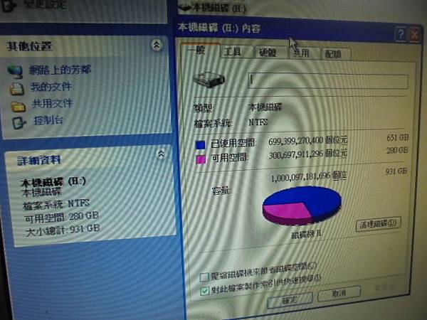 Seagate希捷1TB→3.5吋硬碟接於組裝電腦~SATA接座的訊號7Pin塑膠片→於拆拔中不慎折斷而無法讀取~已救回硬碟裏重要的檔案資料→本機磁碟H:內容NTFS~臺北市長春路-孫先生【已使用空間651GB可用空間280GB容量931GB】
