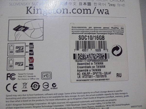 【救出照片】ASUS華碩ZenFone 5→16GB智慧型手機A500CG~不知原因自動關機後再重新開機→停在ASUS進不去安卓系統~已將手機修復正確開機→Kingston金士頓記憶卡原廠包裝背面標示~臺北市內湖區-范小姐【ASSAMBIED IN TAIWAN】