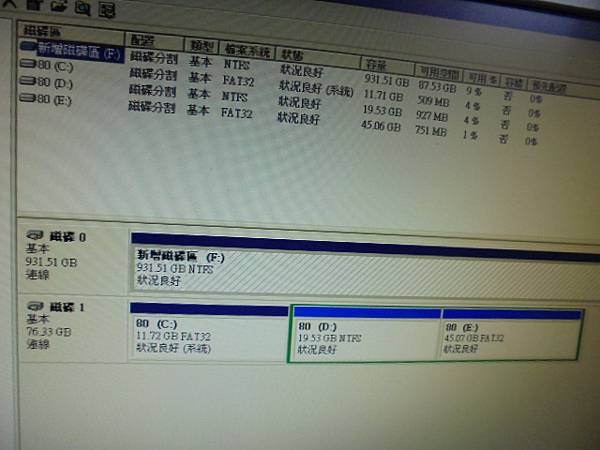 WD威騰1TB~3.5吋BLUE硬碟於組裝電腦使用→自行更換電腦零件時不慎摔到硬碟~更換全新SATA的代用接座使用→已救回硬碟中的重要檔案資料~磁碟0基本931.51GB連線→新北市鶯歌區-邱先生【NTFS新增磁碟區F:狀況良好931.51GB】