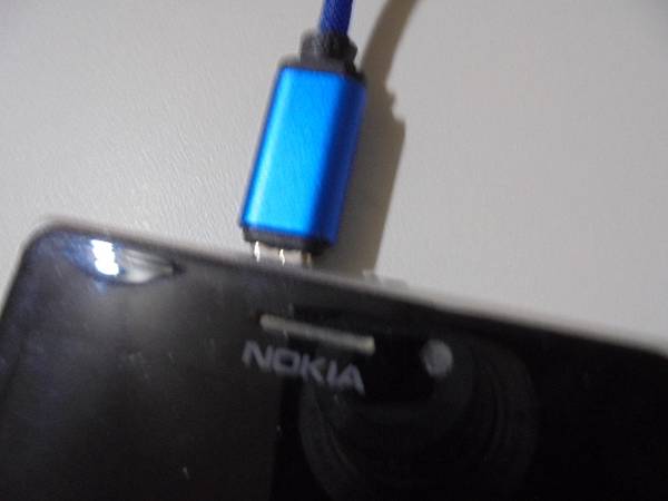 NOKIA諾基亞Lumia 925~16GB智慧型手機不知原因無法開機→插上充電線但沒有亮充電燈號~想修好這隻手機繼續做使用→卻不想送代理商維修~備妥Micro USB充電線對準手機頂端的接座→臺北市內湖區-許先生【將Micro USB充電線插上手機】