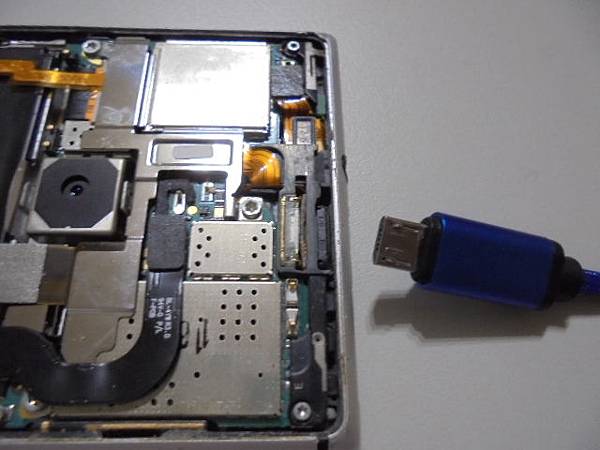 NOKIA諾基亞Lumia 925~16GB智慧型手機不知原因無法開機→插上充電線但沒有亮充電燈號~想修好這隻手機繼續做使用→卻不想送代理商維修~NOKIA諾基亞手機背面置平於桌面上由Micro USB接座→臺北市內湖區-許先生【拔出Micro USB充電線】