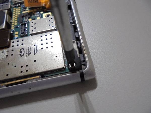 NOKIA諾基亞Lumia 925~16GB智慧型手機不知原因無法開機→插上充電線但沒有亮充電燈號~想修好這隻手機繼續做使用→卻不想送代理商維修~覺得左上方星型螺絲和電路板並無關聯性→臺北市內湖區-許先生【取星型起子套入後順時針方向做鎖緊】