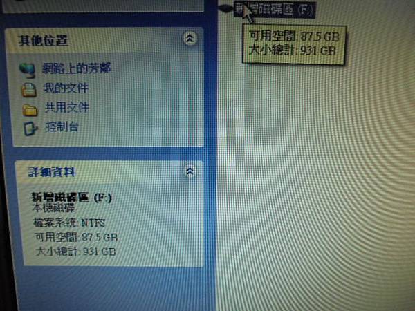 WD威騰1TB~3.5吋BLUE硬碟於組裝電腦使用→自行更換電腦零件時不慎摔到硬碟~更換全新SATA的15Pin+7Pin代用接座使用→已救回WD威騰1TB硬碟中全數重要檔案資料~新增磁碟區F:→新北市鶯歌區-邱先生【本機磁碟可用空間87.5GB大小總計931GB】