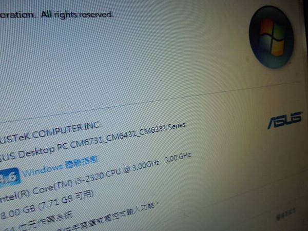 ASUS華碩CM6431桌上型電腦→原廠搭載Windows 7作業系統~已自行還原系統後安裝Office 2010→不知原因卻無法安裝~當天晚上的工作需要使用Office辦公室軟體→電源鍵開機進入作業系統~新北市淡水區-李小姐【ASUS CM6431原廠Windows已啟動】