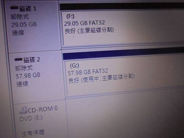 【送貨到府】SONY索尼XPERIA→Z2智慧型手機16GB~手機內建記憶體為最小容量→原本安裝的32GB記憶卡近滿~要更換更大容量Micro SD記憶卡→滑鼠點進存放裝置磁碟管理~新北市板橋區-謝小姐【磁碟區F:32GB FAT32磁碟區G:64GB FAT32檔案系統】
