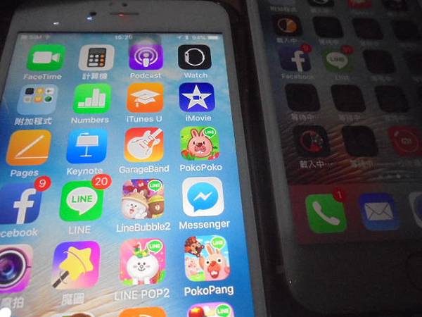 Apple蘋果iPhone 6s Plus~64GB智慧型手機被家人拿榔頭敲壞螢幕→導致手機無法觸控~已更換新螢幕總成→以iTunes備份全數檔案資料~iPhone 6s Plus與iPhone 8 Plus兩隻手機放在一起做比對→新北市板橋區-鄭先生【兩邊的App程式持續進行中】