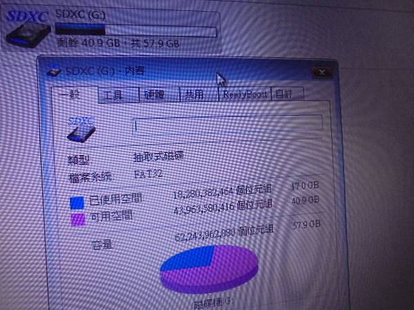【到府更換】SONY索尼XPERIA~D6503智慧型手機16GB→手機內建記憶體為最小容量~原本安裝的Micro SD記憶卡近滿→要更換更高容量記憶卡~SDXC G:FAT32剩餘40.9GB共57.9GB→新北市板橋區-謝小姐【已使用空間17GB可用空間40.9GB容量57.9GB】