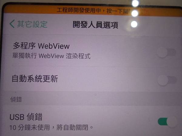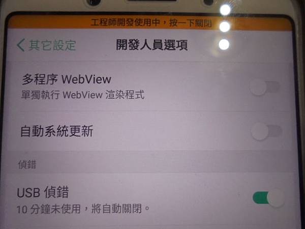 OPPO歐珀A73→32GB智慧型手機拍攝很重要的影片檔案~但不小心由手機中做了刪除→問過很多處理人員都說不可能救回~要救回內建記憶體中重要的影片→工程師開發使用中,按一下關閉~新北市板橋區-王先生【USB偵錯10分鐘未使用,將自動關閉】