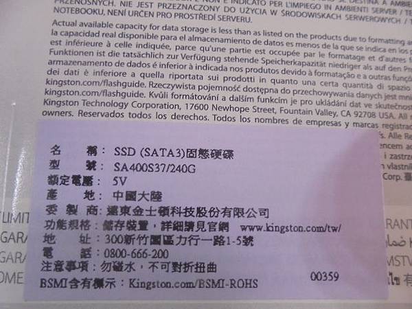 SONY索尼VPCEA16FW→筆記型電腦原廠搭載的2.5吋HDD硬碟~使用中覺得HDD讀取運轉效能過慢→想改為SSD固態硬碟提升使用時的效能~家人已忘記作業系統登入密碼→包裝背面原廠標籤印有兩項認證BSMI-ROHS~臺北市中山區-尚先生【SA400S37/240G】
