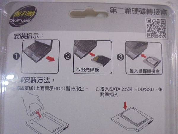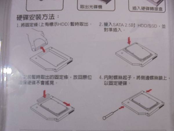 SONY索尼VPCEA16FW→筆記型電腦原廠搭載的2.5吋HDD硬碟~使用中覺得HDD讀取運轉效能過慢→想改為SSD固態硬碟提升使用時的效能~家人已忘記作業系統登入密碼→第二顆硬碟轉接盒原廠包裝~臺北市中山區-尚先生【背面印有硬碟轉接盒安裝指示】