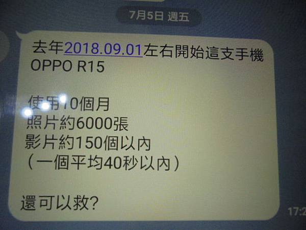 OPPO歐珀R15~128GB智慧型手機儲存很多且重要的影像檔案→於恢復原設定選項中先按清除全部內容與設定~再點還原系統設定→想救回內建記憶體中重要的影像~文字訊息問還可以救?要停用手機→新北市板橋區-王先生【又是一位沒有概念的使用者】