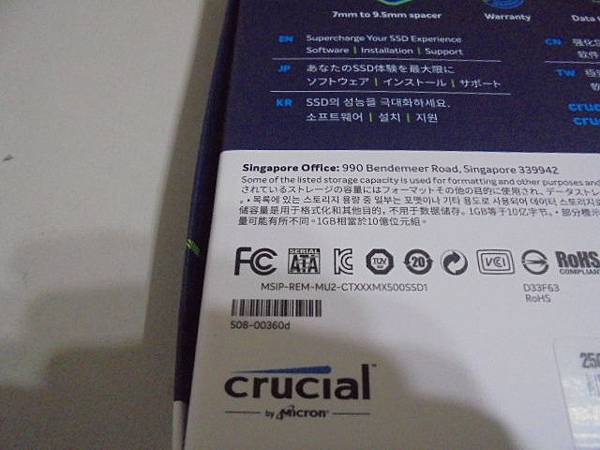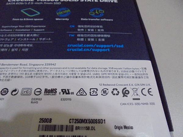 ASUS華碩CM6431桌上型電腦~不久前還原ASUS原廠搭載的Windows 7作業系統→自行安裝Office 2010~卻無法成功安裝→當天晚上的工作需要使用Office辦公室軟體~crucial固態硬碟SSD包裝外盒背面→新北市淡水區-李小姐【Origin Mexico墨西哥】