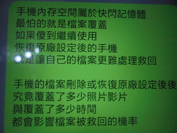 OPPO歐珀R15~128GB智慧型手機儲存很多且重要的影像檔案→於恢復原設定選項中先按清除全部內容與設定~再點還原系統設定→想救回內建記憶體中重要的影像~文字訊息問還可以救?要停用手機→新北市板橋區-王先生【又是一位沒有概念的使用者】