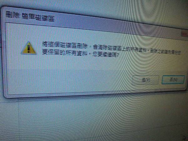 ASUS華碩CM6431桌上型電腦→原廠搭載Windows 7作業系統~已自行還原系統後安裝Office 2010→不知原因卻無法安裝~當天晚上的工作需要使用Office辦公室軟體→將這個磁碟區刪除會清除磁碟區上的所有資料~新北市淡水區-李小姐【您要繼續嗎】