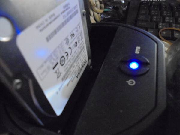TOSHIBA東芝750GB→2.5吋硬碟為TOSHIBA東芝筆電出廠搭載~更換SSD硬碟後改為資料碟使用儲存照片影片→不知原因出現未格式化視窗~要救出硬碟裏的重要檔案資料→東芝750GB硬碟插上已連接電腦的硬碟座~新北市三重區-蔡小姐【壓電源亮藍燈】
