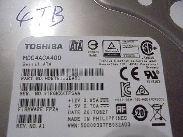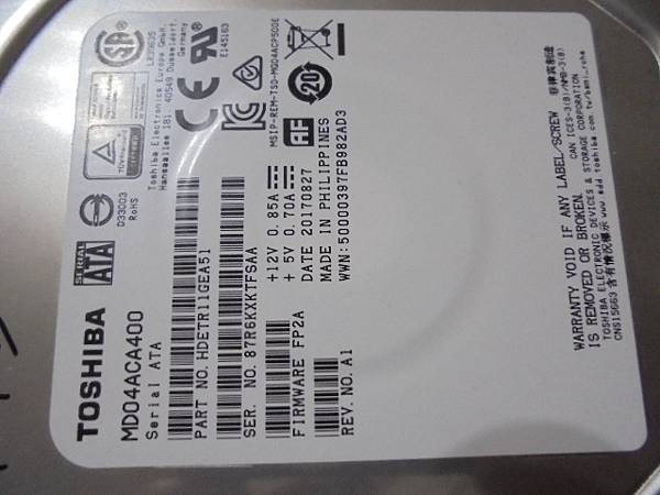 TOSHIBA東芝4TB~3.5吋硬碟於組裝電腦使用→更換硬碟時不慎扯到接線~折斷7Pin訊號SATA接座塑膠片導致無法讀取→拆下電路板自覺無法處理~要救出硬碟裏檔案→MD04ACA400 DATE:20170827~新北市汐止區-黃先生【MADE IN PHILIPPINES菲律賓】