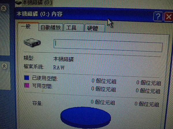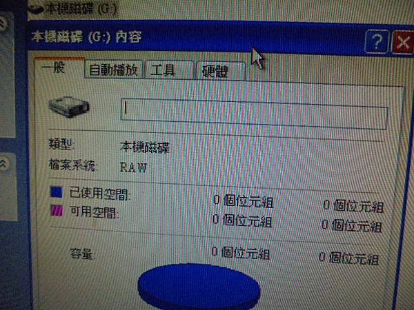 TOSHIBA東芝750GB→2.5吋硬碟為TOSHIBA東芝筆電出廠搭載~更換SSD硬碟後改為資料碟使用儲存照片影片→不知原因出現未格式化視窗~要救出硬碟裏的重要檔案資料→本機磁碟G:檔案系統RAW~新北市三重區-蔡小姐【已使用空間可用空間0個位元組】