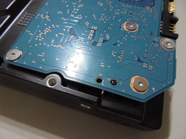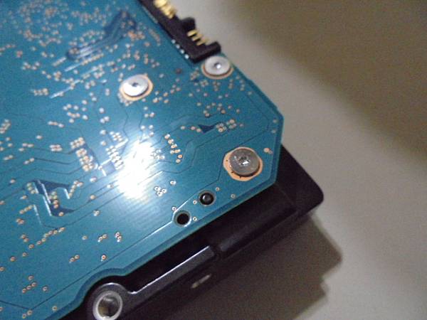 TOSHIBA東芝4TB→3.5吋硬碟於組裝電腦使用~更換硬碟時不慎扯到接線→折斷SATA接座7Pin訊號塑膠片導致無法使用~拆下電路板自覺無法處理→要救出硬碟裏檔案資料~正在鬆開星型固定螺絲時→新北市汐止區-黃先生【發現硬碟電路板突起不平整】