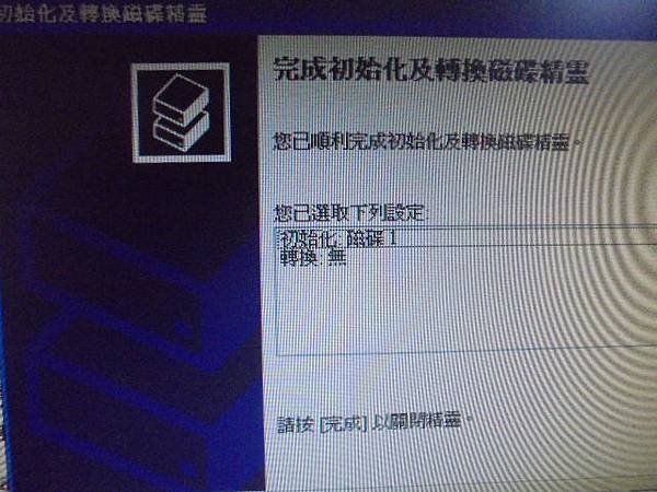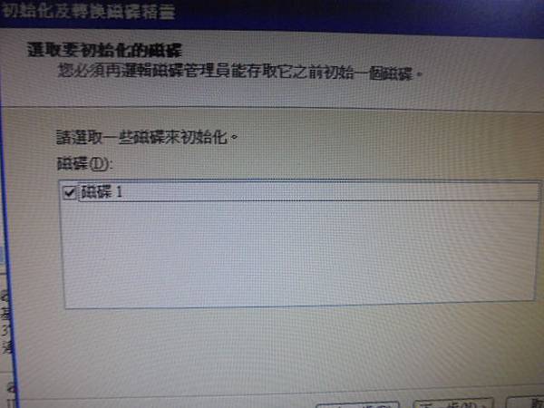 Seagate希捷3.5吋2TB~組裝桌上型電腦使用硬碟→孩子翻倒開機使用中的電腦後斷電~重開機已讀不到硬碟→光華商場針對Seagate希捷3.5吋2TB報價30K救援費用~選取一些磁碟來初始化勾選磁碟1→新北市板橋區-顧先生【完成初始化及轉換磁碟精靈】 Seagate希捷3.5吋2TB→組裝桌上型電腦使用硬碟~孩子翻倒開機使用中的電腦後斷電→再開機就讀不到硬碟~已救回Seagate希捷3.5吋2TB硬碟裏重要的網拍檔案→滑鼠點進存放磁碟管理~新北市板橋區-顧先生【歡迎使用初始化及轉換磁碟精靈下一步】