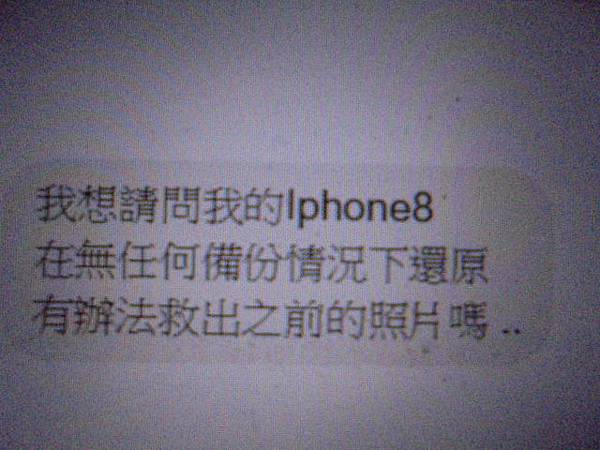 Apple蘋果iPhone 8 Plus→64GB智慧型手機借給朋友使用前沒將檔案備份~朋友歸還手機時才發現被做了重置→所有重要檔案均消失不見~要救回內建記憶體中的相片影片→先於Facebook臉書粉絲頁訊息詢問~臺中市南區-湯小姐【說明手機目前的問題】