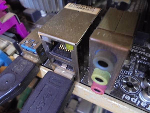 TOSHIBA東芝4TB→3.5吋硬碟於組裝電腦使用~更換硬碟時不慎扯到接線→折斷SATA接座7Pin訊號塑膠片導致無法使用~拆下電路板自覺無法處理→要救出硬碟裏檔案資料~將USB 3.0轉接裝置的USB端→新北市汐止區-黃先生【插上技嘉主機板USB接座】 TOSHIBA東芝4TB~3.5吋硬碟於組裝電腦使用→更換硬碟時不慎扯到接線~折斷7Pin訊號SATA接座塑膠片導致無法讀取→拆下電路板自覺無法處理~要救出硬碟裏檔案→確認硬碟已轉動後再取特殊SATA訊號線~新北市汐止區-黃先生【套入SATA訊號接口】