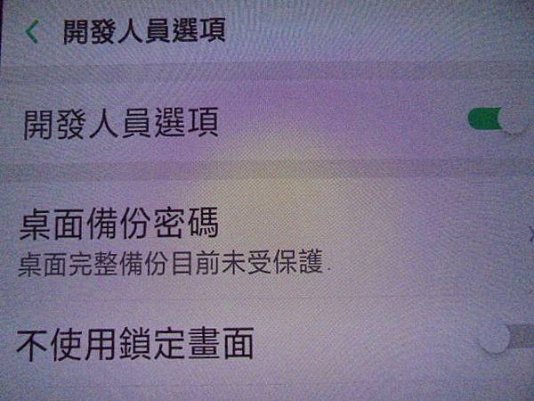 OPPO歐珀R15~128GB智慧型手機儲存很多且重要的影像檔案→於恢復原設定選項中先按清除全部內容與設定~再點還原系統設定→想救回內建記憶體中重要的影像檔案~檢視手機的開發人員選項欄位→新竹縣竹東鎮-林先生【開發人員選項已右撥為ON】