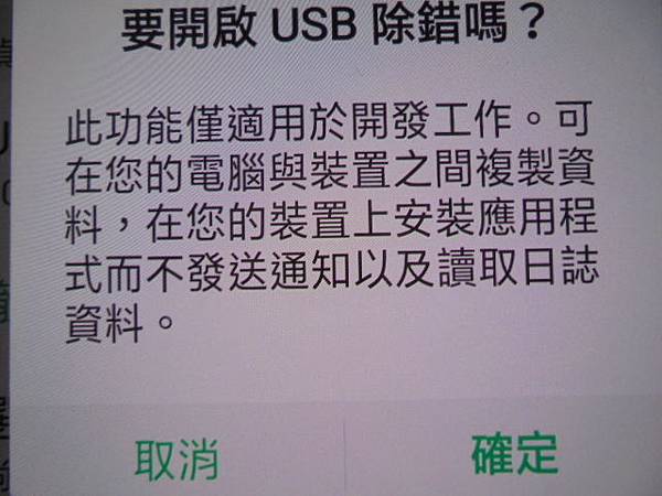 OPPO歐珀R15~128GB智慧型手機儲存很多且重要的影像檔案→於恢復原設定選項中先按清除全部內容與設定~再點還原系統設定→想救回內建記憶體中重要的影像檔案~要開始USB除錯嗎?手指點選確定→新竹縣竹東鎮-林先生【USB偵錯選已右撥為ON】