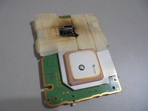 GARMIN台灣國際航電nuvi 57→GPS車用衛星導航莫名無法開機~送板橋府中店檢測→判定Mini USB接座損壞導致不過電~報價後仍不想讓原廠維修→已修好接座繼續使用~撕除貼於GPS車用衛星導航電路板上的保護→新北市新莊區-郭先生【清潔電路板】