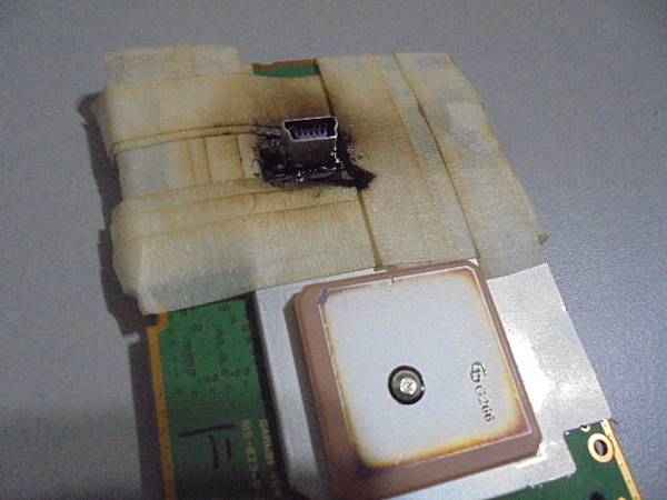 GARMIN台灣國際航電GPS~nuvi 57車用衛星導航莫名無法開機→送板橋府中店檢測~判定Mini USB接座損壞導致不過電→原廠報價後仍不願意維修~已修好接座繼續使用→修復的原廠DIP型Mini USB接座~新北市新莊區-郭先生【順利正確焊回原本位置】
