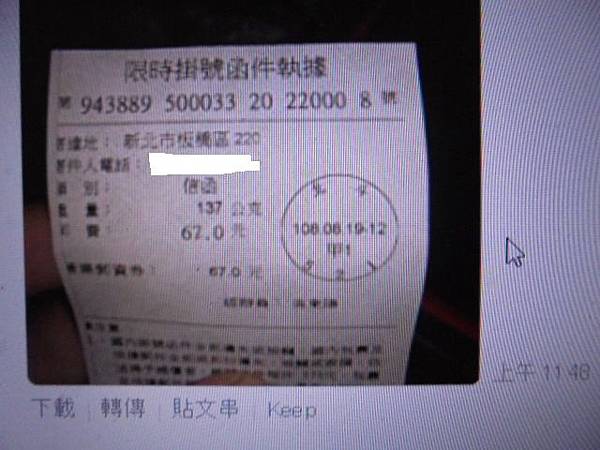 OLYMPUS奧林巴斯WS-852~4GB錄音筆購買公司貨做公務使用→不知使用的碳鋅電池或鹼性電池流出液體~導致錄音筆控制面板無法操作→想修好錄音筆繼續使用~當天上午11:48分以LINE傳來照片→彰化縣北斗鎮-邱先生【北斗郵局限時掛號函件收據】