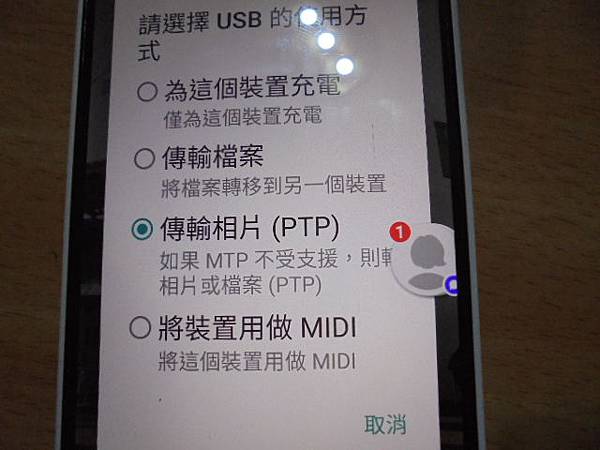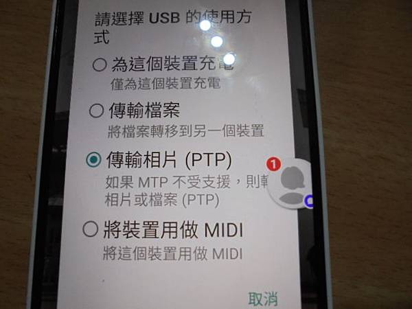 【現場檢測】Nextbit雲端手機Robin智慧型手機32GB→手機使用時沒電自動關機後插上充電線~沒亮充電燈亦無法開機→撥電話詢問原廠回覆無料可修~已救回家人的照片影片→請選擇USB的使用方式~新北市板橋區-廖先生【必需勾選傳輸相片(PTP)】