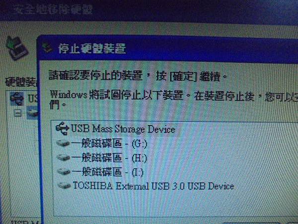 TOSHIBA東芝750GB~2.5吋硬碟為TOSHIBA東芝NB出廠搭載→改為資料碟儲存重要檔案使用卻出現未格式化視窗~由其他人判定無法救援處理→已救出結婚與蜜月照片~停止硬體裝置→新北市三重區-蔡小姐【現在可以放心地從系統中移除USB Mass裝置】