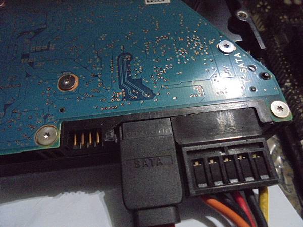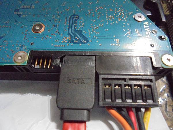 TOSHIBA東芝4TB→3.5吋硬碟於組裝電腦使用~更換硬碟時不慎扯到接線→折斷SATA接座7Pin訊號塑膠片導致無法使用~拆下電路板自覺無法處理→已救出硬碟裏檔案資料~東芝TOSHIBA硬碟4TB~新北市汐止區-黃先生【套入SATA電源線和特殊SATA訊號線】